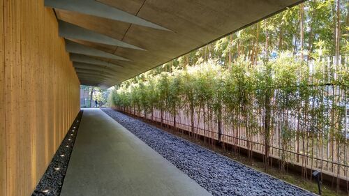 「草月会館」の中にあるカフェ【CONNEL COFFEE】。全面ガラス張りの店内からは文化と自然が楽しめます。